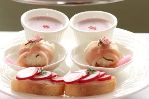 今回は、2026さくらアフタヌーンティーのウエルカムドリンクとセイボリーをご紹介します。